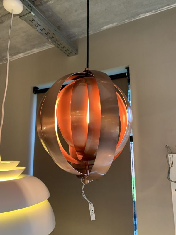 De Moon werd ontworpen in 1960 en is een van de eerste verlichtingsontwerpen van Verner Panton. De iconische pendel wordt gekenmerkt door zijn waaiervormig ontwerp met tien ringvormige lamellen die perfect gepositioneerd zijn om een zacht, sfeervol en niet-verblindend licht te geven. De lamellen weerkaatsen en filteren het licht en de pendel verandert van uitzicht afhankelijk van de hoek waaronder je hem bekijkt.