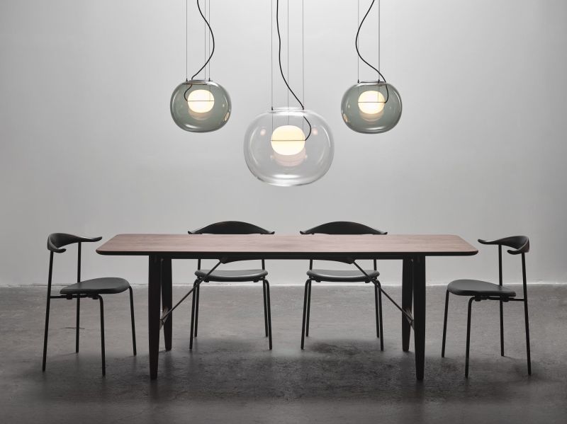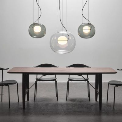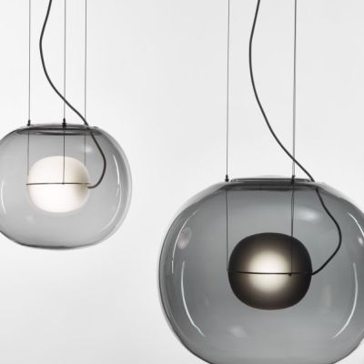 Deze groot formaat lamp met een matte kern van ontwerpster Lucie Koldova belichaamt een zachte poëzie, eenvoud, zuiverheid en evenwichtige proporties. Een sleutelrol wordt gespeeld door de inoculatie van lichtgevende lichamen en hun onderlinge interactie in de ruimte.