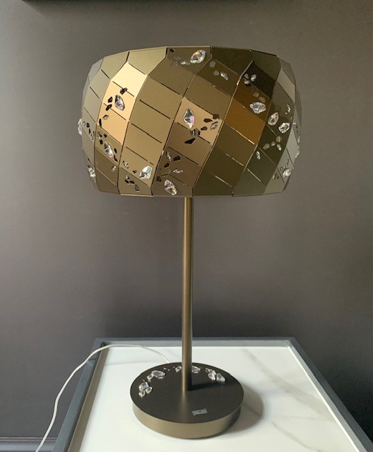Het armatuur filtert licht door de inkepingen die in het kristal zijn opgevuld, waardoor sprankelende reflecties ontstaan die doen denken aan prachtig bloeiende boomtakken. Swarovski kristal afwerking. Fabrikant: Swarovski Afwerking: goud brons, kristal swarovski Lamp type: E27 Lamp vermogen: 60W Afmetingen: 36 x 36 x 61cm