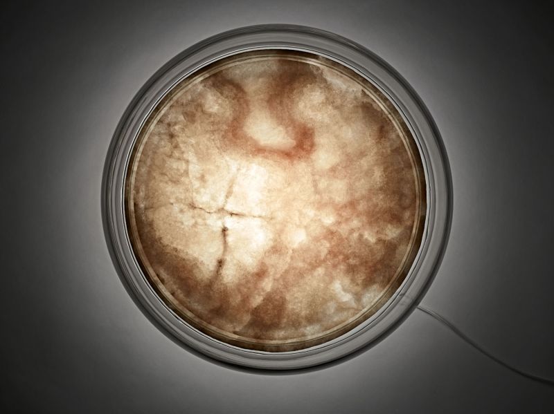 Het concept is gebaseerd op het principe van het verlichten van steen, en de naam verwijst naar de gelijkenis in vorm van de lamp met de beroemde Franse meringue-confiserie. De natuurlijke onvolkomenheden in het glas en de verscheidenheid aan structuren in de steen maken van elke lamp een uniek origineel. De zuiverheid van de natuurlijke materialen en het vakmanschap bij de verwerking ervan hebben geleid tot een lamp met een buitengewone sfeer. Macaron is vervaardigd met behulp van traditionele technieken en is kenmerkend voor de kenmerkende en blijvende esthetiek van het merk BROKIS. Macaron is verkrijgbaar in drie maten – waarvan de grootste ook een aantrekkelijke vloerlamp is – en in verschillende glaskleuropties met witte of honingkleurige onyx.